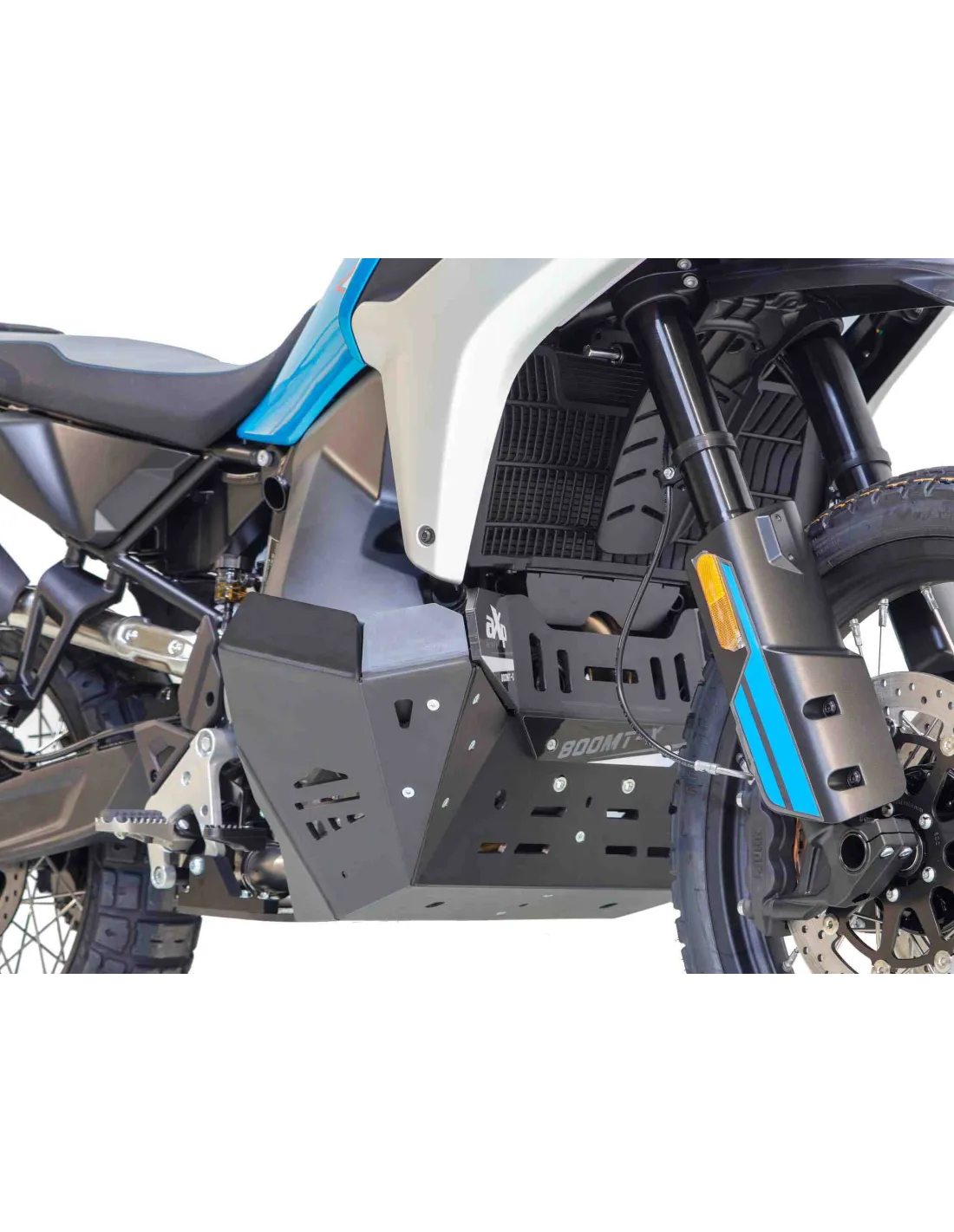 Fabricado en plástico de polietileno de alta densidad con un grosor de 8 mm, el cubrecarter AXP ofrece una protección completa para su moto, desde el depósito hasta el bloque del motor, pasando por el sistema de escape y los cárteres.